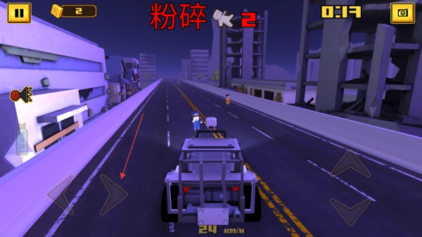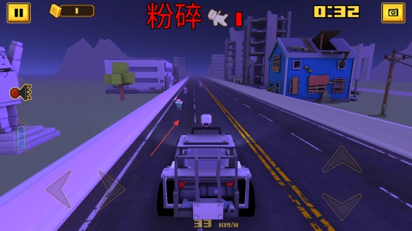 2、当看到路上的僵尸时,驾驶车辆去撞击它们,成功撞击后会显示粉碎效果以及撞击的数量,与此同时还能获得金币。