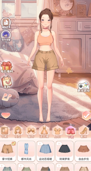 1、打开衣柜界面,在发型、衣裙、配饰等分类里挑选单品,依据个人审美自由搭配,调整造型细节,打造专属于你的美少女形象。