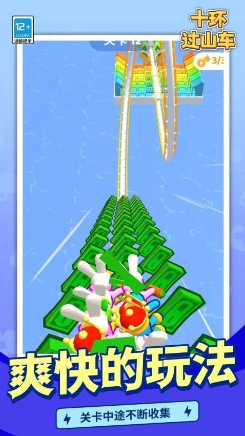 《十环过山车》是一款以游乐场过山车为主题的模拟冒险闯关休闲游戏。在游戏中,玩家需操控过山车的行驶方向,避开轨道上的各类障碍物,同时还能饱览沿途的美丽景致,带来非凡奇妙的游戏体验,快一起登上过山车,畅享欢乐的游戏时光吧。