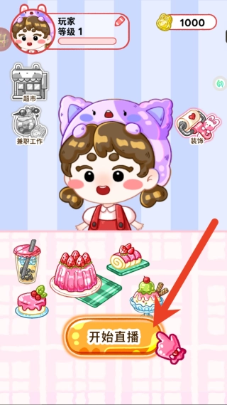 进入游戏后,在主界面挑选直播主题并点击开启直播,化身为热门吃播主播,开启你的美食直播之旅。