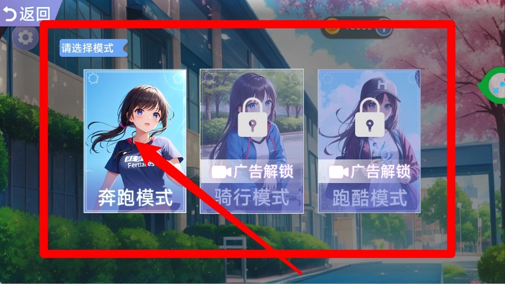 2. 模式选择界面设有多种玩法选项,玩家可优先体验奔跑模式,骑行与跑酷模式则可通过观看广告解锁,从而收获更丰富的冒险乐趣。