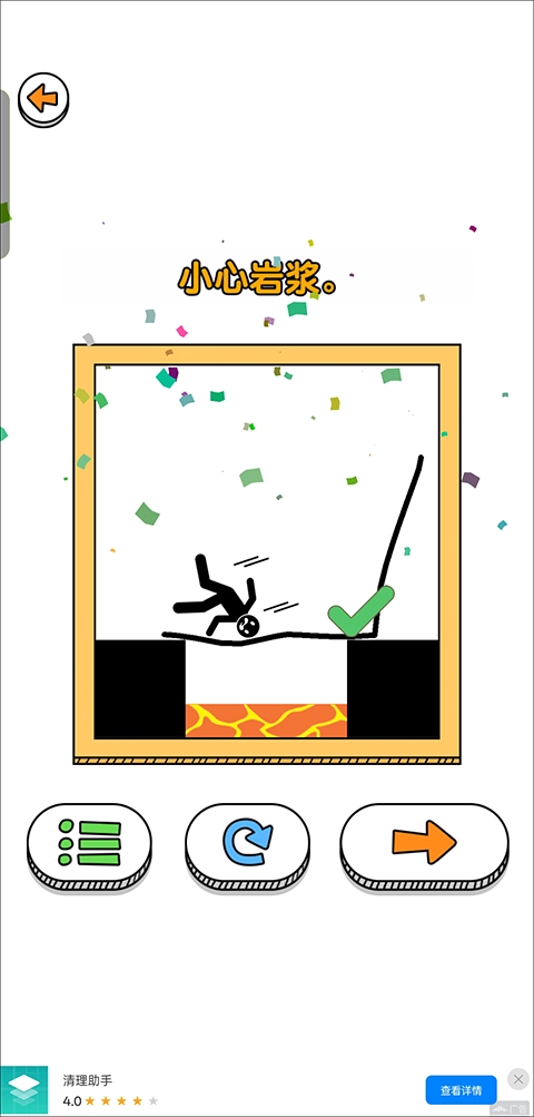 1、创意画线玩法:可以自由绘制线条或各种形状,用来为火柴人搭建安全的行进路径、阻挡途中的危险,或是触发机关,每个关卡都存在多种不同的解法。