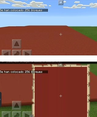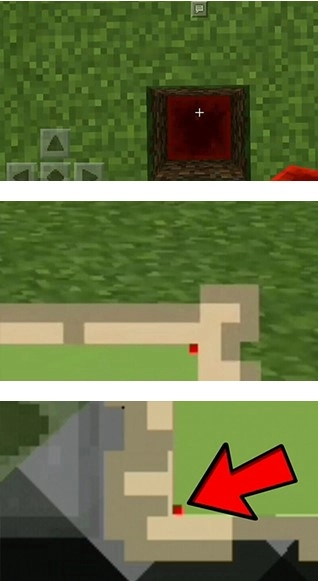 2、在地图的两个对角位置各挖两格深,并放置一个红石块作为定位标识。