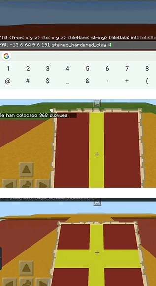 5、同理,先用黄色黏土标记好坐标,接着使用fill指令将对应区域填满,完成十字型的制作步骤后,重新生成地图,就能得到带有礼包图案的地图了。