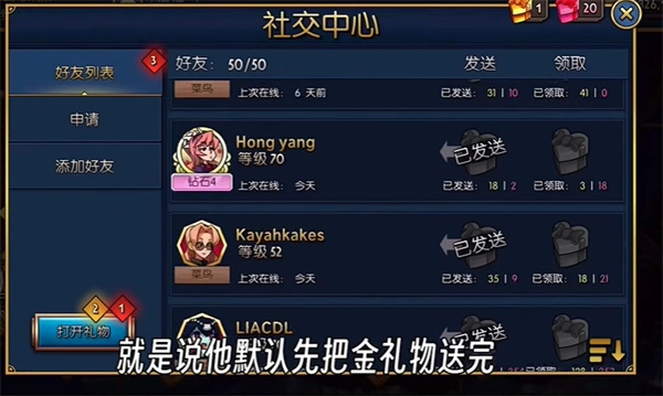 3、还能进入社交中心,既可以查看好友列表,也能添加好友,还能打开礼物。