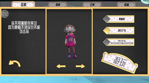 1、启动恐惧娃娃游戏后,稍等片刻进入主界面,点击“游玩”按钮就能开始游戏,设置选项可用于调整相关参数。