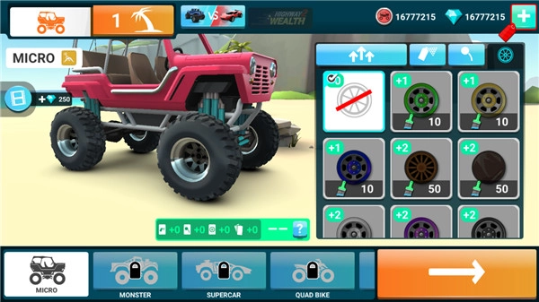 通过完成任务关卡来获取资源,你可以对车辆的轮胎尺寸、速度、抓地力、稳定性等方面进行升级和定制,还能借助涂料对赛车外观进行个性化调整。