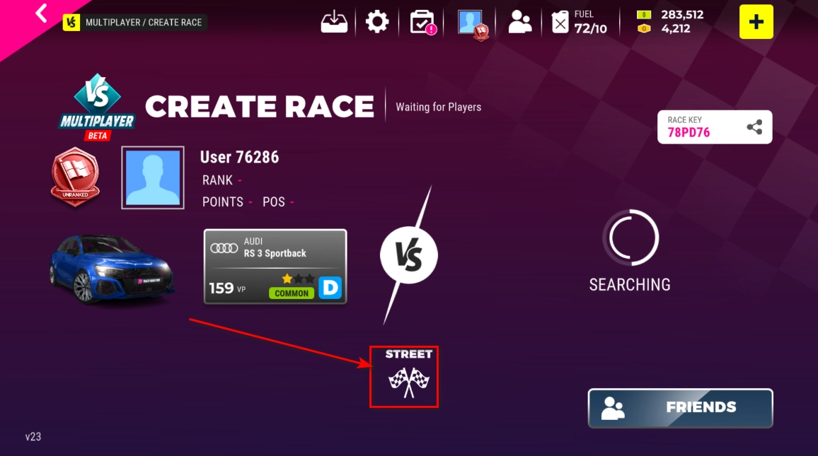 5.我们可以把右上方的RACE KEY分享给好友,邀请他加入房间,等朋友进入后,直接开始游戏就行啦。