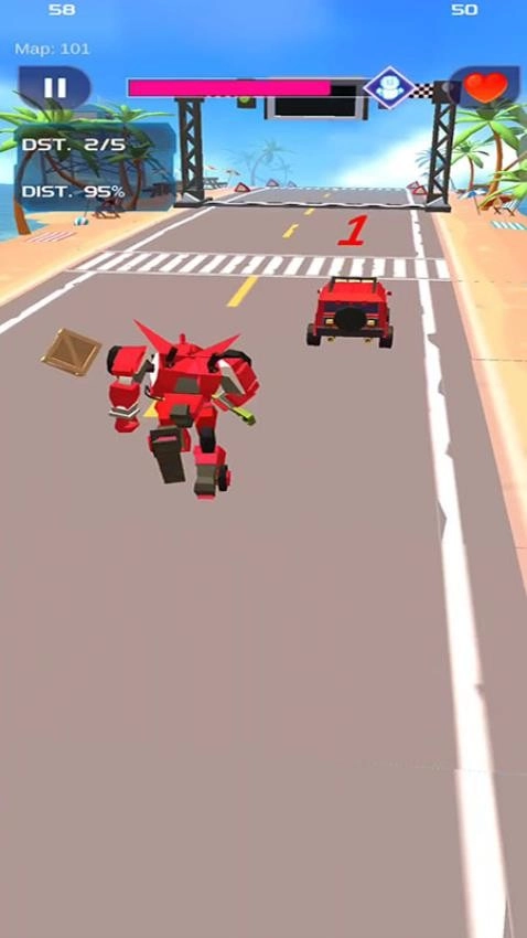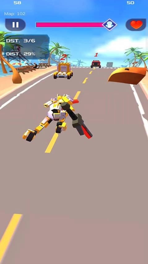 1、化身拥有超凡技艺的机甲汽车人驾驶员,开启一场场极速狂飙的热血竞速较量,疾驰途中能够借助武器与技能对其他竞争者发起攻击,场面十分震撼。