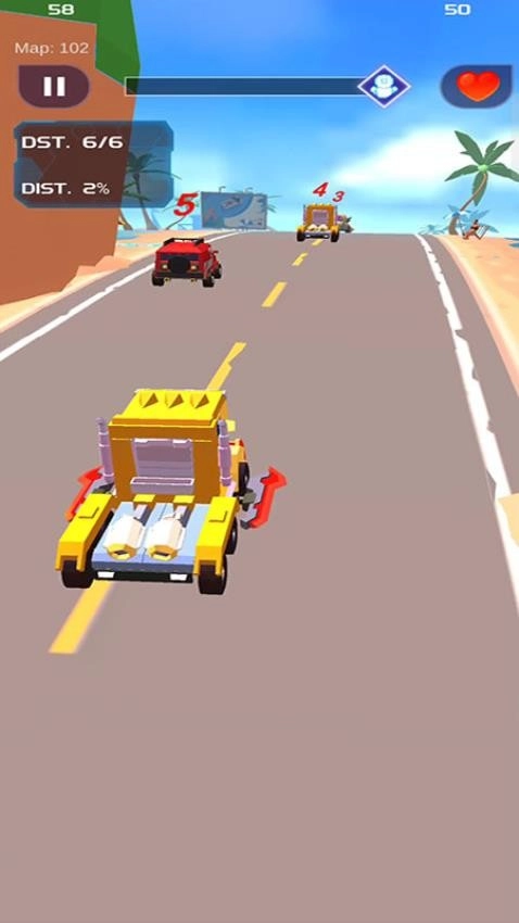 3、道路进度清晰明了,随时查看路程与排名状况,及时调整行驶计划,唯有保持领先优势冲过终点,方可获取丰厚奖励。