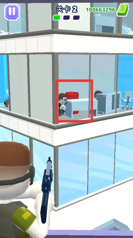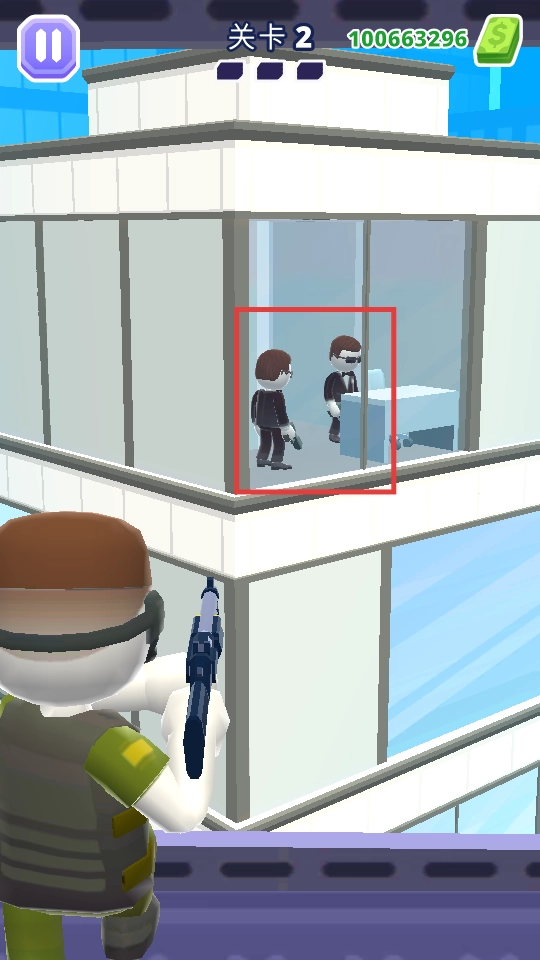2、对准建筑里的敌人,开枪消灭目标,留意敌人的分布情况。