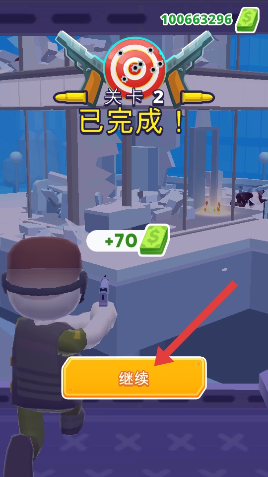 4、完成关卡后,可获得金币奖励,点击【继续】按钮挑战后续关卡。