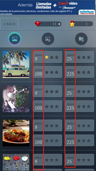 2、挑选游戏关卡,每个关卡上的数字表示该关卡被划分成了多少块拼图。