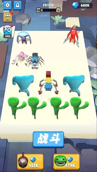 3、后续的关卡会出现更加强大的目标,需要合成出高级战士才能完成击杀。