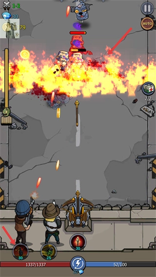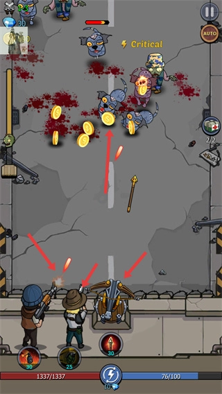2、击败僵尸后获得的金币可以用于升级城墙的防御、防御塔和英雄的攻击伤害和射击速度;