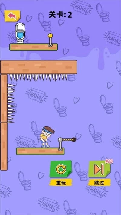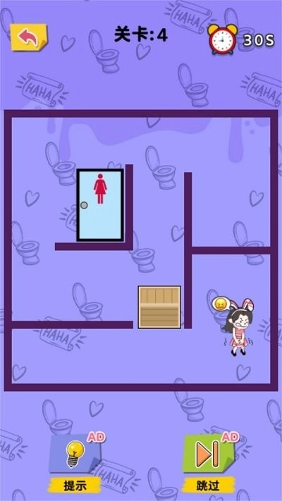 1.核心玩法:玩家通过滑动屏幕控制角色移动方向,目标是在倒计时结束前抵达厕所位置。部分关卡需先收集钥匙或触发机关才能解锁通路,增加策略性。
