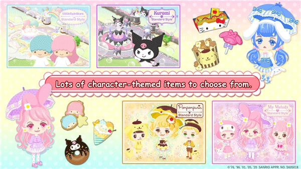 角色养成:游戏收录了超过 10 位三丽鸥经典角色,包括凯蒂猫、美乐蒂、布丁狗等。玩家可创建个人虚拟头像,深度定制外观,还能为角色更换超过 500 件三丽鸥正版服装配件,进行发型、发饰等分层搭配。