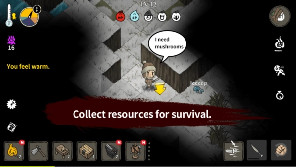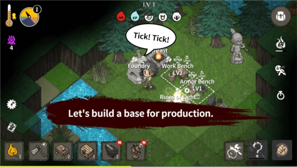 生存机制:玩家得去搜寻食物和各类资源,用来保持生命值与能量的稳定;而每当夜晚来临,就会出现危险的怪物,这无疑加大了生存的挑战难度。