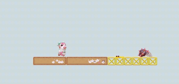 在这类黏性环境中,移动类的玩具只能单独存在,没办法构建出“可动-固定-可动”的衔接形态,而且两个可移动的玩具彼此之间也无法通过黏性物质相互粘连。