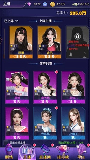 主播的上阵名额由身份等级决定,提升身份等级能解锁更多上阵位置,最多可同时安排25名主播参与。