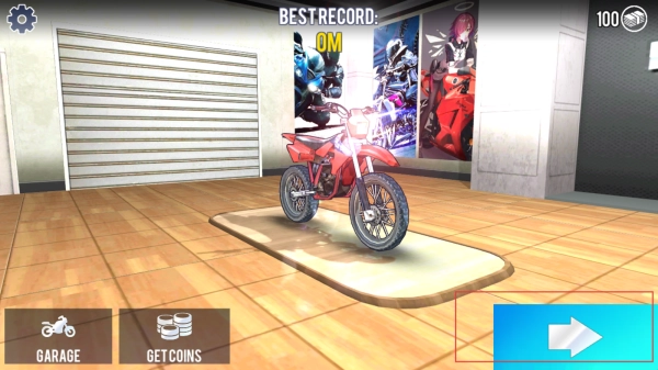进入游戏前,先完成游戏体验流程,随后在初始页面找到右侧的蓝色箭头按钮并点击。进入游戏后,可选择心仪的摩托车,也能直接开启游戏进程。