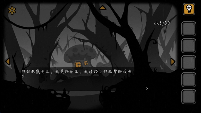 一开始,女主角只需向左望向图中的蘑菇房子,接着走回家就行。途中会有一只小老鼠前来搭话,无论选择哪个选项都没关系。