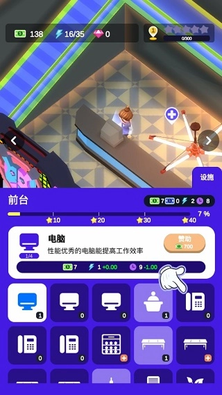 你可以用经营所得的收入来扩大酒吧的规模,当酒吧出现破损时也能进行修缮。想必你希望打造出独一无二的酒吧风格,在这里这一切都能轻松达成——每次获得收益后,就能逐步完善酒吧的装饰和各类设施。随着酒吧变得越来越精致,自然会吸引更多顾客光临。你还能招募更多员工,并将他们安排到不同岗位上,以此提升整体的运营效率,整个过程充满乐趣。
