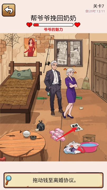 在这款游戏里,帮助一位老爷爷重新赢回老奶奶心意的那一关,不仅是最具趣味性的,同时难度也相对较高。接下来为大家介绍的就是这一关卡的具体玩法指南。