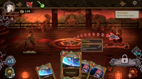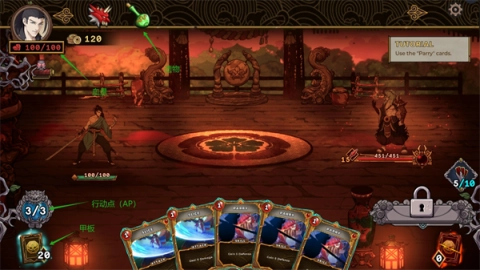 每个回合开始时,从牌组里抽5张牌到手牌中。出牌时可以依据实际情况来施放,敌人会发起攻击,需要进行合理的防守。