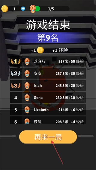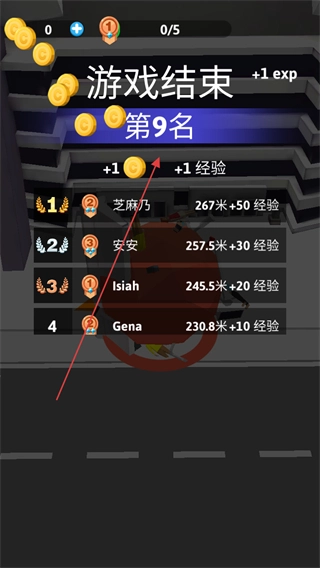 游戏结束后,系统会依据最终排名发放金币与经验奖励,例如位列第9名的玩家可获得1金币和1经验的奖励加成。