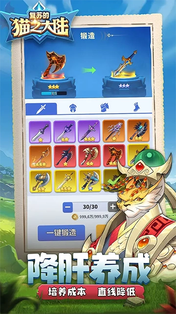 风火水土,光暗交织。数十位猫族传奇英雄为你助阵。寻求最佳的阵容搭配,打造最强神兵,能帮助你无往不利。更有关羽,秦始皇,悟空,哪吒等华夏神话史诗英雄,虚空降临。