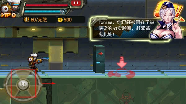 进入游戏后,滑动左下角的摇杆来移动角色的方向;