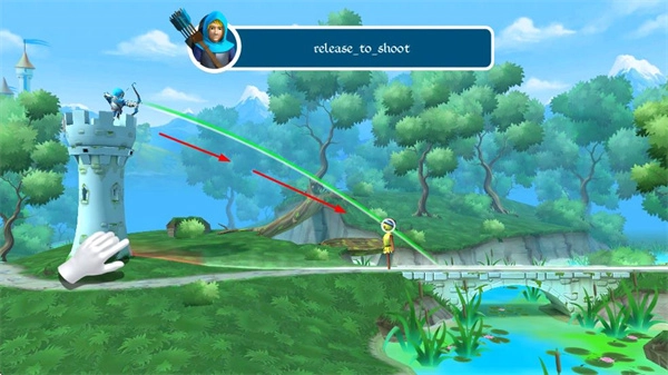 你将操控弓箭手角色,通过释放操作射出箭矢,瞄准并攻击敌人。箭矢会以抛物线轨迹飞行,命中敌人后将对其造成伤害。