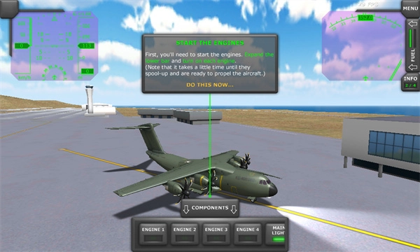点击PLAY按钮,即可进入Turboprop Flight Simulator游戏的飞行模拟环节,开启飞行任务。