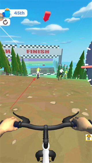 朝着终点FINISH标志骑行,同时留意前方对手的位置,伺机完成超越。