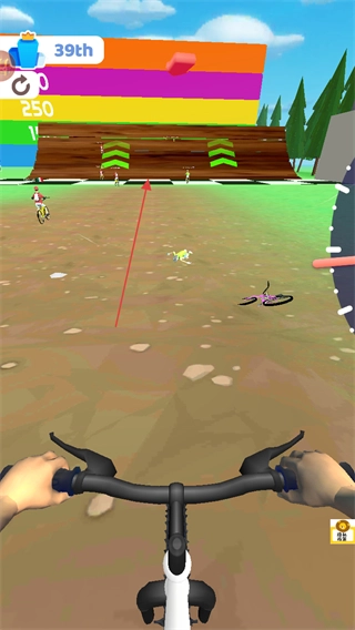 当碰到彩色的障碍物时,要操控自行车跳跃着通过,以此防止摔倒或者降低速度。