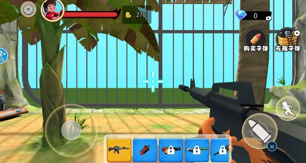 通过虚拟摇杆控制角色在场景中移动,借助手中的枪支来达成逃脱目标。