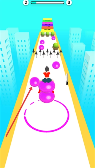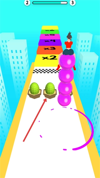 《球球我最美》是一款主打操控球球奔跑收集的休闲跑酷游戏,核心玩法聚焦于在色彩缤纷的城市道路上灵活规避各类障碍。玩家需要引导一颗灵动的球球在布满挑战的赛道上持续前行,既要收集沿途的紫色球体,也要留意躲避黑色尖刺、仙人掌以及旋转刀具等危险障碍物。