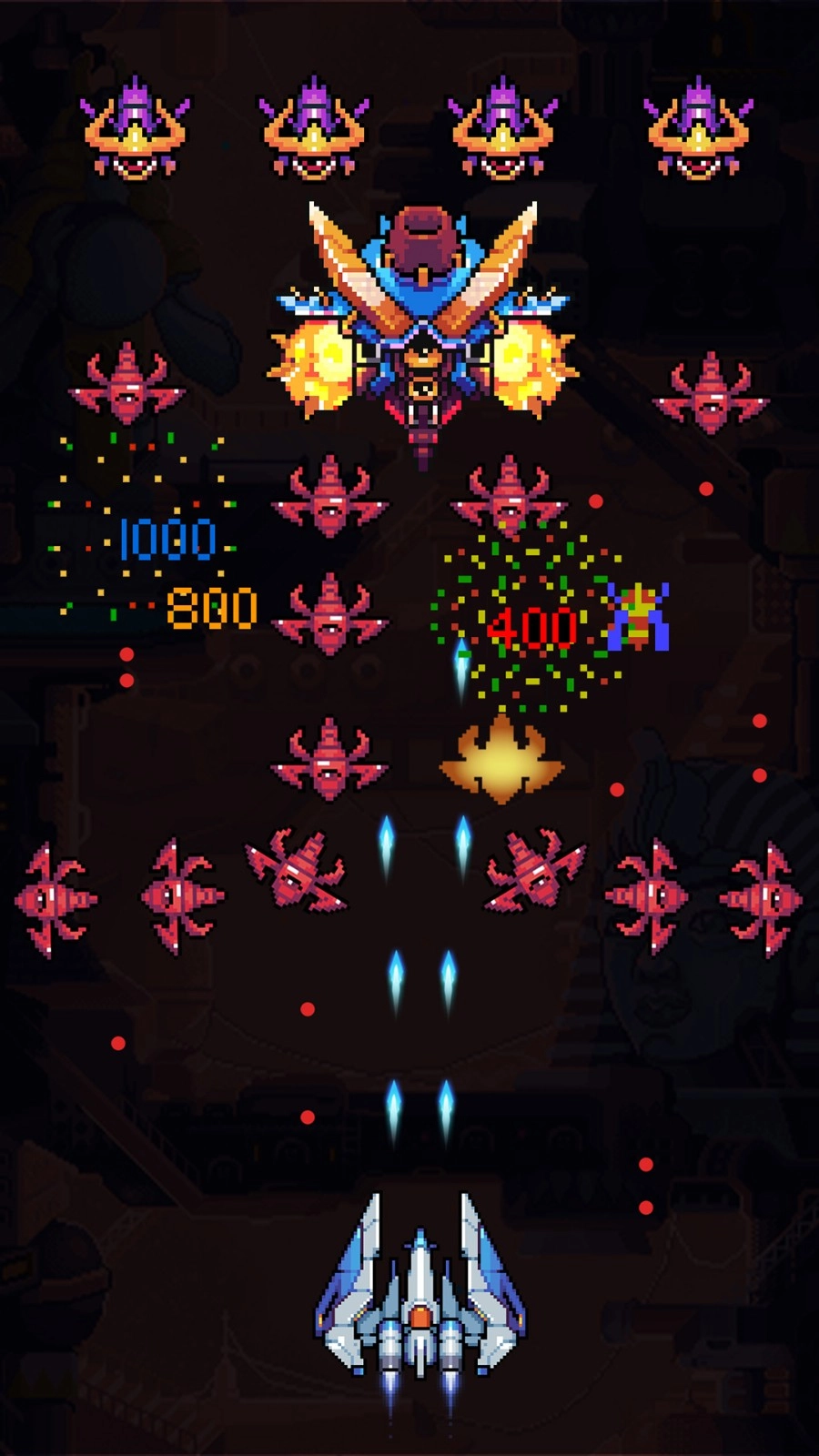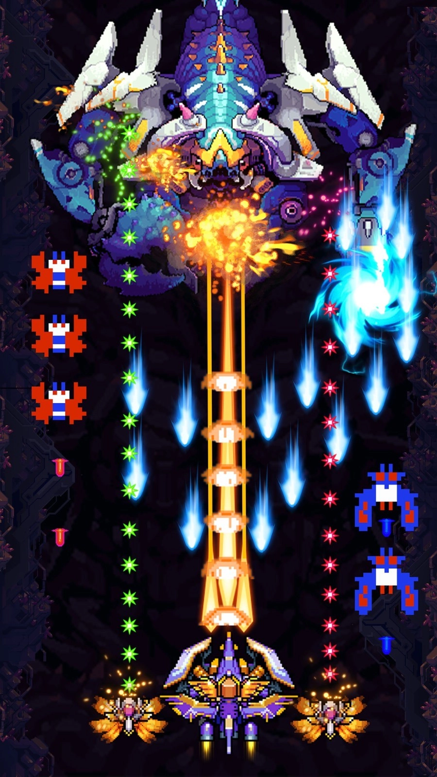 以无垠银河作为战场基底,构建满溢科幻质感的游戏天地,敌机、BOSS与弹幕的设计尽显华丽,烘托出沉浸式的星际战斗氛围。2、搭建多元的武器成长框架,玩家可通过收集道具来逐步强化主武器,同时还能解锁超级炸弹,帮助自身提升战斗能力以对抗强大敌人。