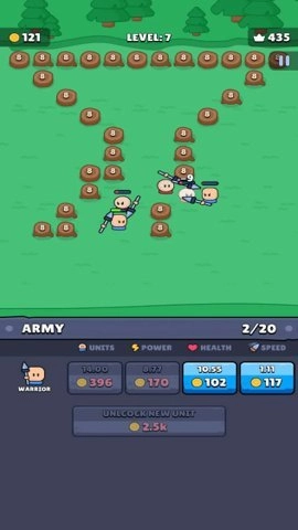闲置勇士是一款简单的策略塔防游戏,玩家只需轻松点击就能进入这个充满挑战的游戏世界。进入游戏后,玩家需要耐心等待,然后点击主角开始战斗。战斗过程中,玩家要为角色打气,以此尽可能提升战斗效果。游戏的每一关都设有不同的挑战,玩家需要保证兵源充足,不然就会有失败的风险。