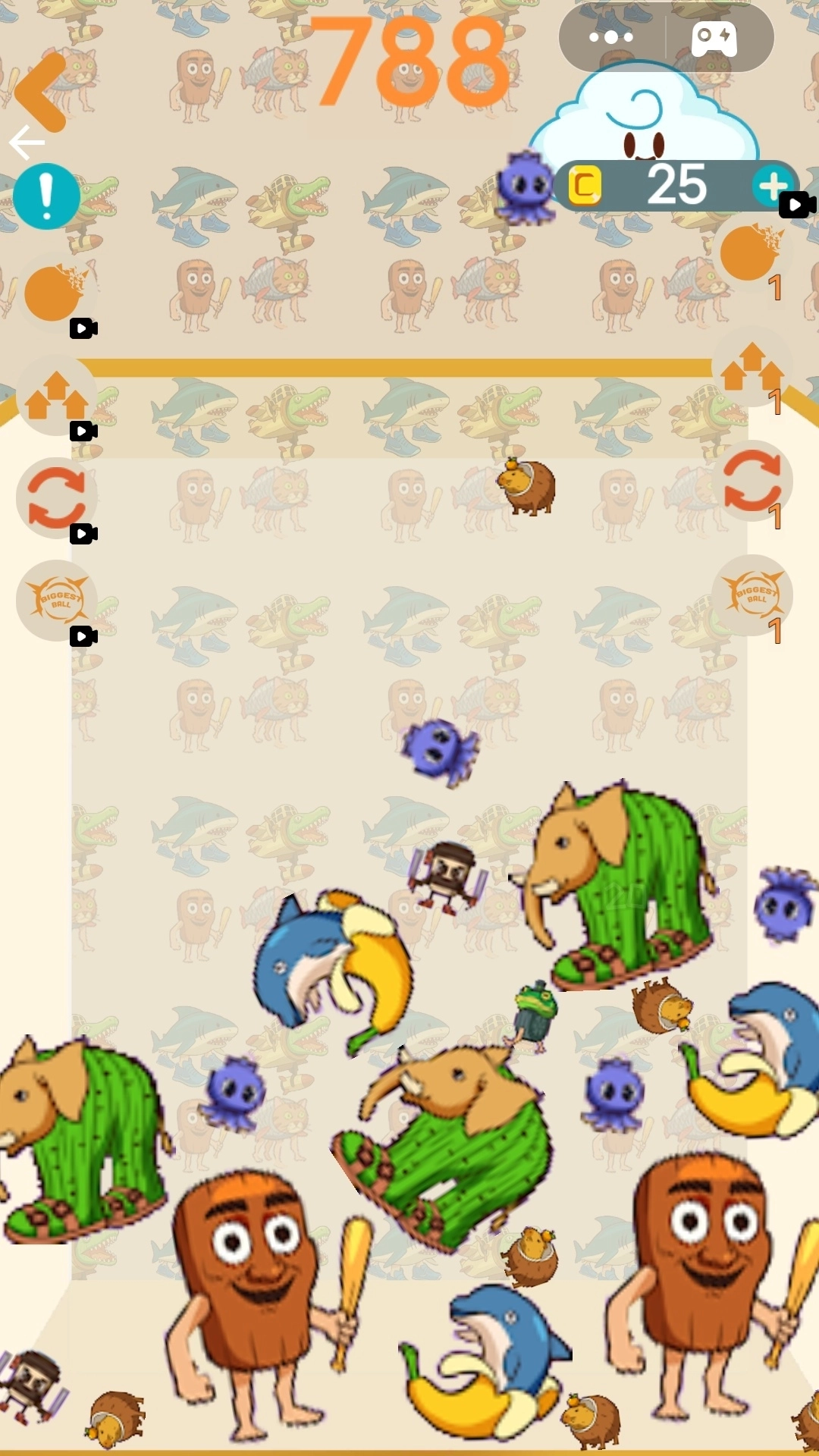 2.借助墙壁的反弹作用以及水果之间的连锁反应,有时候一次掉落就能引发多次合成效果。
