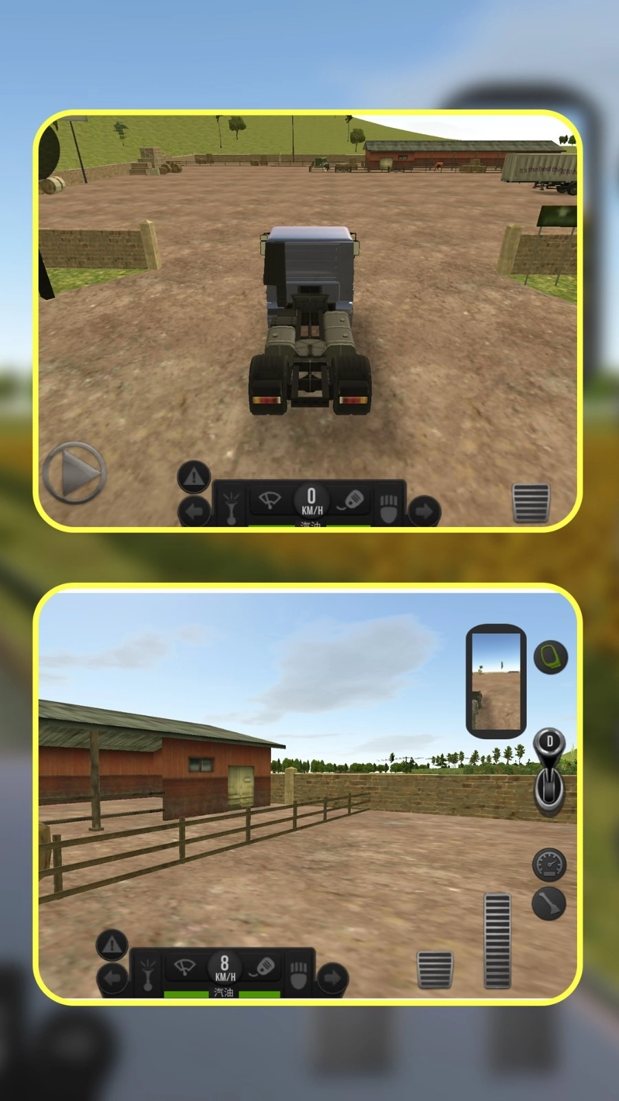 1、玩家在不同场景中操控卡车行驶,借助屏幕上的方向、加速、刹车等按钮来控制车辆移动,从而完成运输任务。