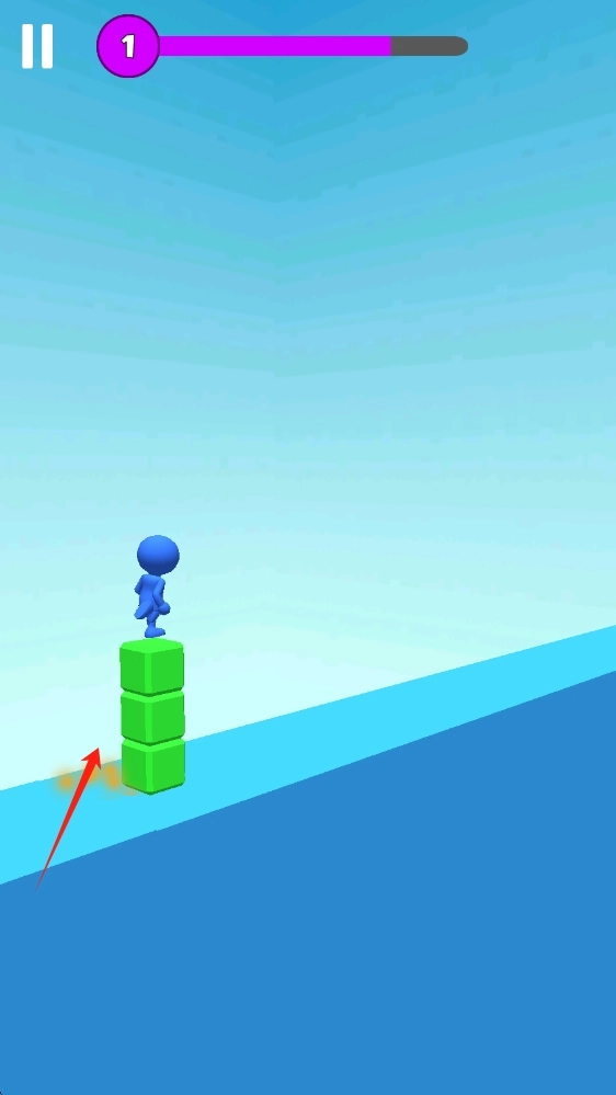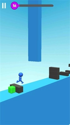 游戏中,灵活操控蓝色小人在绿色方块上跳跃前进,注意避开危险,同时关注上方紫色进度条,努力推进游戏进程。