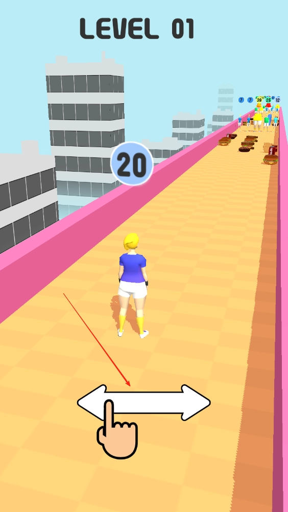 我是保龄球是一款以趣味休闲为核心的作品,玩家将操控小人在场景通过滑动屏幕左右移动,不断吃掉食物让体型逐渐变大,同时要留意迎面而来的人群避免碰撞,最终以变大的体型像保龄球一样冲撞出去完成挑战,画面风格轻松明快,搭配趣味音效,让玩家在轻松的氛围里享受从积累到爆发的乐趣,无论是碎片时间放松还是闲暇时娱乐,都能带来别样的休闲体验。