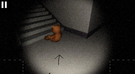 回到楼梯口时,留意到地面上写着“DEAD”,旁边还有一只泰迪熊,绝对不要靠近那里,不然会立刻游戏结束。