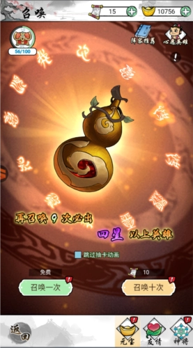 累计召唤元宝10次,必定能得到四星及以上品质的英雄;而召唤卷轴的获取方式,包括葫芦山、杂货店、村庄商店、葫芦商店、元神商店、海岛试炼和葫芦树升级这些途径。