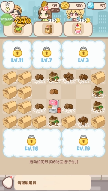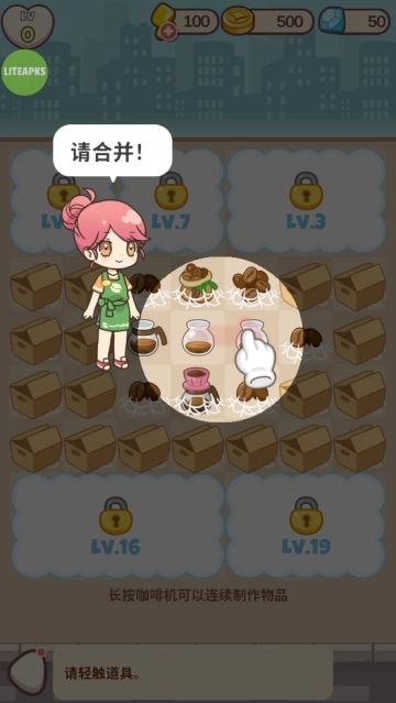 2、通过两个相同的合拼合并可以合成更高级的物品