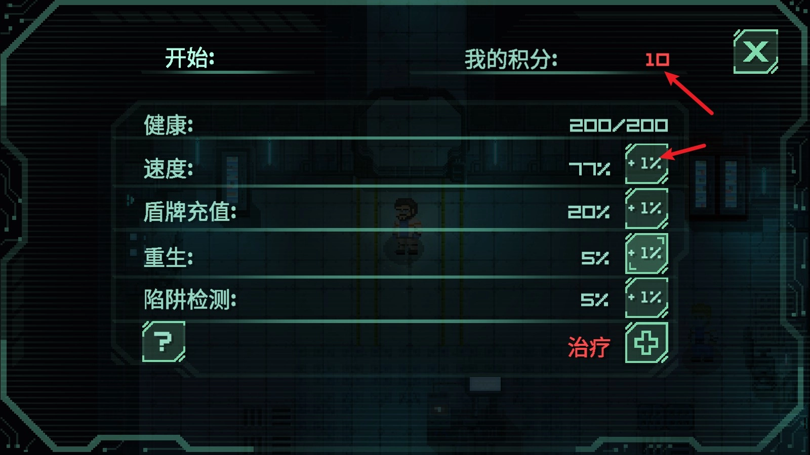6、点击右侧的人物图标,可以花费积分来提升自己的属性。