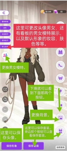 2、关于男女头像的更改以及看板模特的更换,默认形象的妆容、肤色调整都在这个地方。