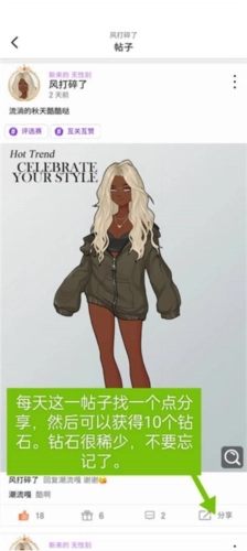 10、前面提到做任务的钻石保底仅为40个,因此你需要每天额外进行分享操作,这样一来,你每天能获得的保守钻石数量就能达到50个。